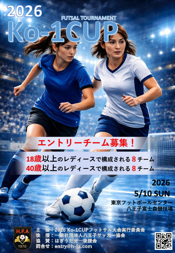 2026 Ko-1CUP フットサル大会 参加チーム募集を開始しました...