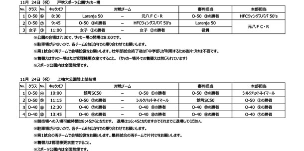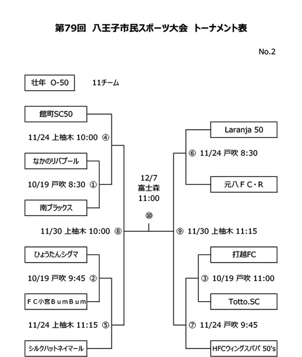 第79回市民スポーツ大会 壮年・女子サッカー日程表・トーナメント表