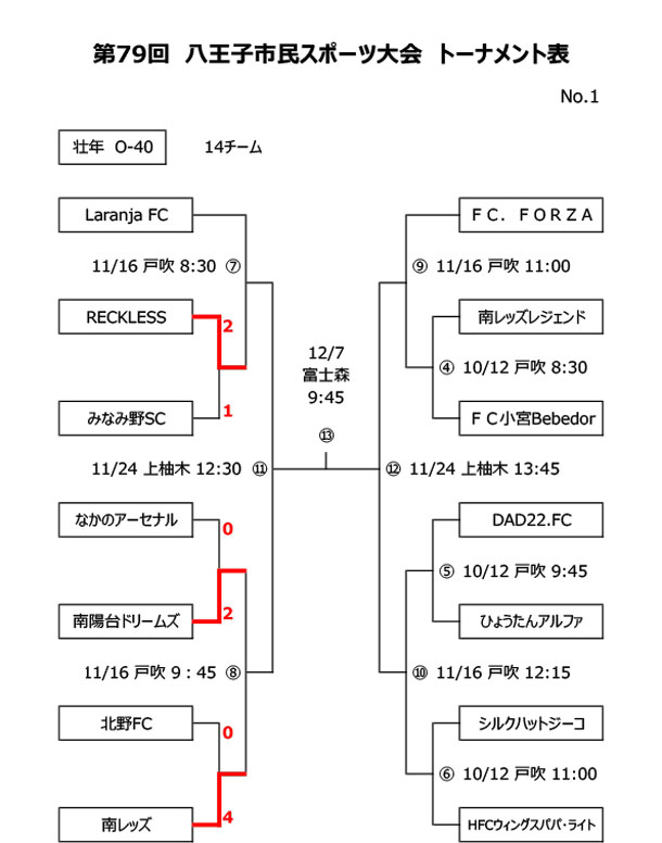 第40回記念 新春フットサル大会 日程トーナメント表