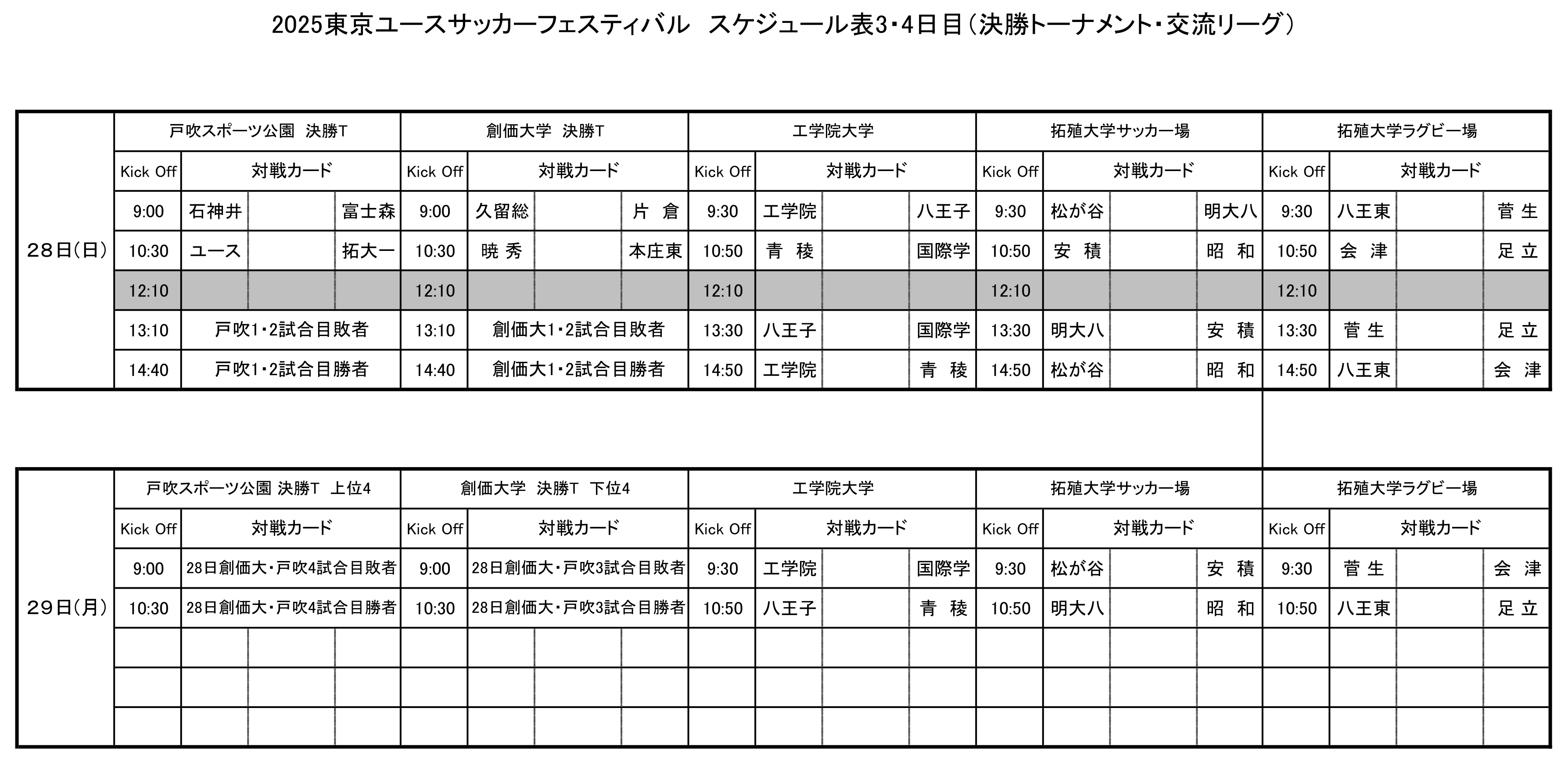 第19回(2025)東京ユースサッカーフェスティバル 1・2日目の結果と3・4日目スケジュールを掲載しました。