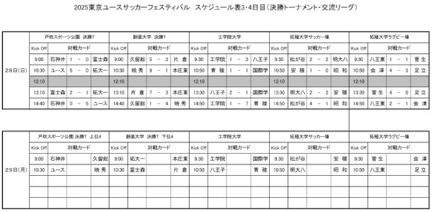 第19回(2025)東京ユースサッカーフェスティバル 1・2日目の結果と3・4日目スケジュールを掲載しました。