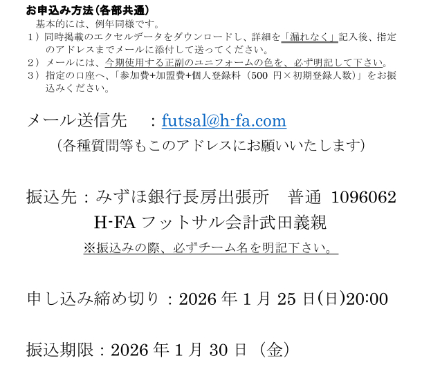社会人フットサルリーグOVER40 2026年度募集