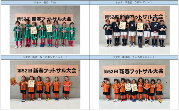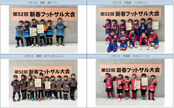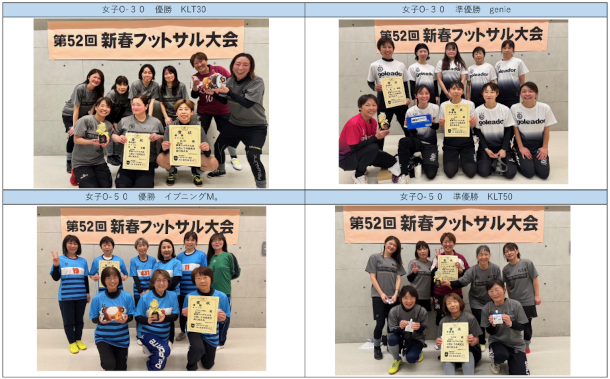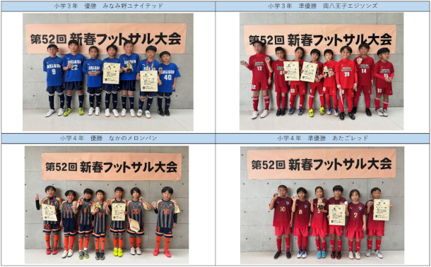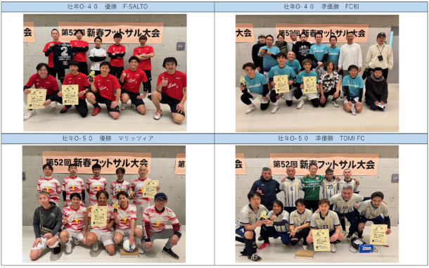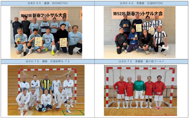 第52回新春フットサル大会 優勝準優勝チームを掲載しました。