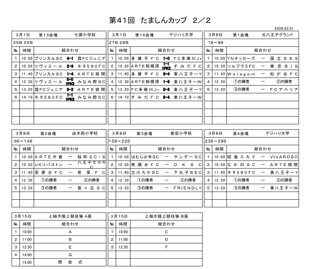 「第41回八王子招待少年サッカー大会 たましんカップ」結果(~3/1)...